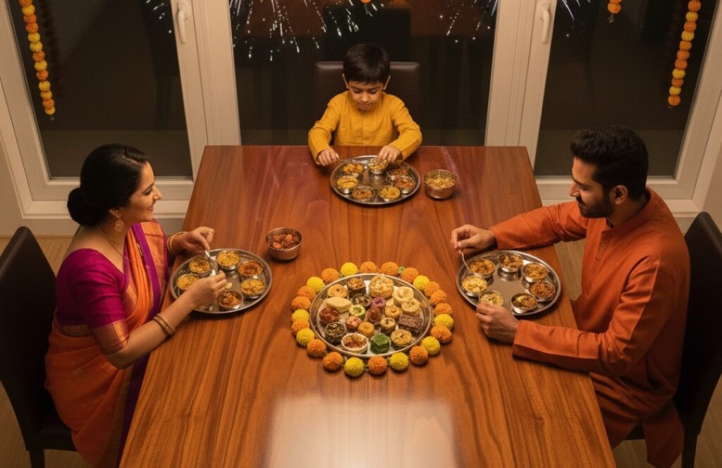 For harmony, echo similar wood tones from your prayer area to create visual continuity and emotional warmth in your dining area.